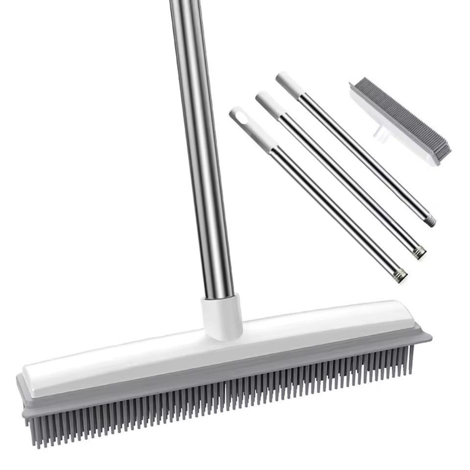 Make your home hair-free in just one sweep with this carpet broom: the multifunctional broom that effortlessly removes fur, dust, and lint from carpets, furniture, and floors. Thanks to its special rubber bristles, it pulls even deeply embedded hairs out of fibers — without noise, electricity, or hassle.
